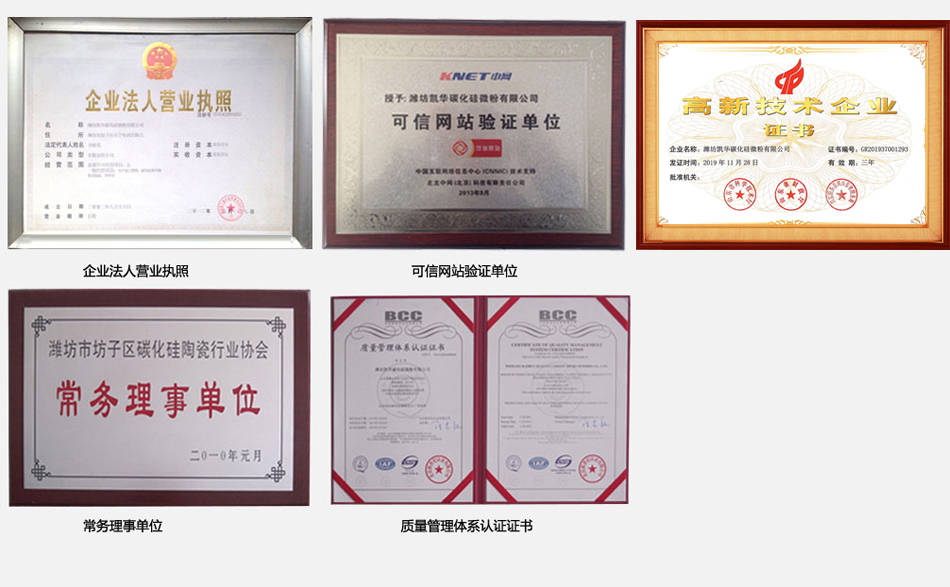 濰坊凱華碳化硅微粉有限公司成立于2002年,國家高新技術企業,公司占地40畝,標準廠房19000平方,辦公樓、研發2000平方,年生產能力3萬噸。一直從事陶瓷級微粉的生產銷售,所生產的微粉具有純度高、粒形好、穩定性強等特點,主要用于反應燒結、無壓燒結、硅碳棒新工藝、汽車尾氣處理(DPF)、納米隔熱保溫、機車制動、防腐涂料、研磨拋光、橡膠樹脂等領域。標準產品有:F240、F1200、W40、W28、W20、W14、W10、W7、W5、W3.5、W2.5、W2、W1.5、W1、W0.5、D3E、5S、100F及整形高密度系列綠碳化硅微粉,廣泛應用于燒結、防腐、研磨拋光、涂腐等廣大領域。